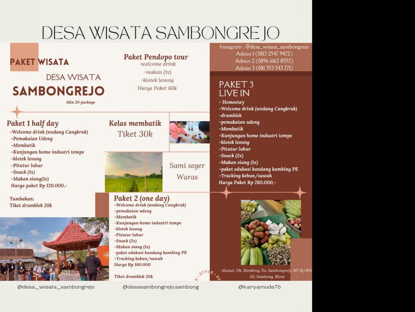 Desa Sambongrejo merupakan salah satu desa wisata yang berada di Kecamatan Sambong Kabupaten Blora. Salah satu daya tarik utama yang ada di desa ini adalah kampung literasi sedulur SIKEP atau lebih dikenal sebagai kampung Samin yang tepat nya berada di dukuh blimbing. Disini wisatawan akan diajak untuk mengenal, berdialog, berinteraksi, dengan warga Samin, belajar dari sifat kejujuran dan Kesederhanaan dari masyarakat samin. Selain itu wisatawan juga akan disuguhi disuguhi kesenian Warga Samin berupa Gejog Lesung dan Drumblek, Kuliner asli Warga Samin, dan masih banyak potensi wisata lainnya, seperti belajar membatik, menikmati keindahan persawahan, kunjungan ke tempat bersejarah, dan juga kunjungan ke peternakan kambing etawa.
