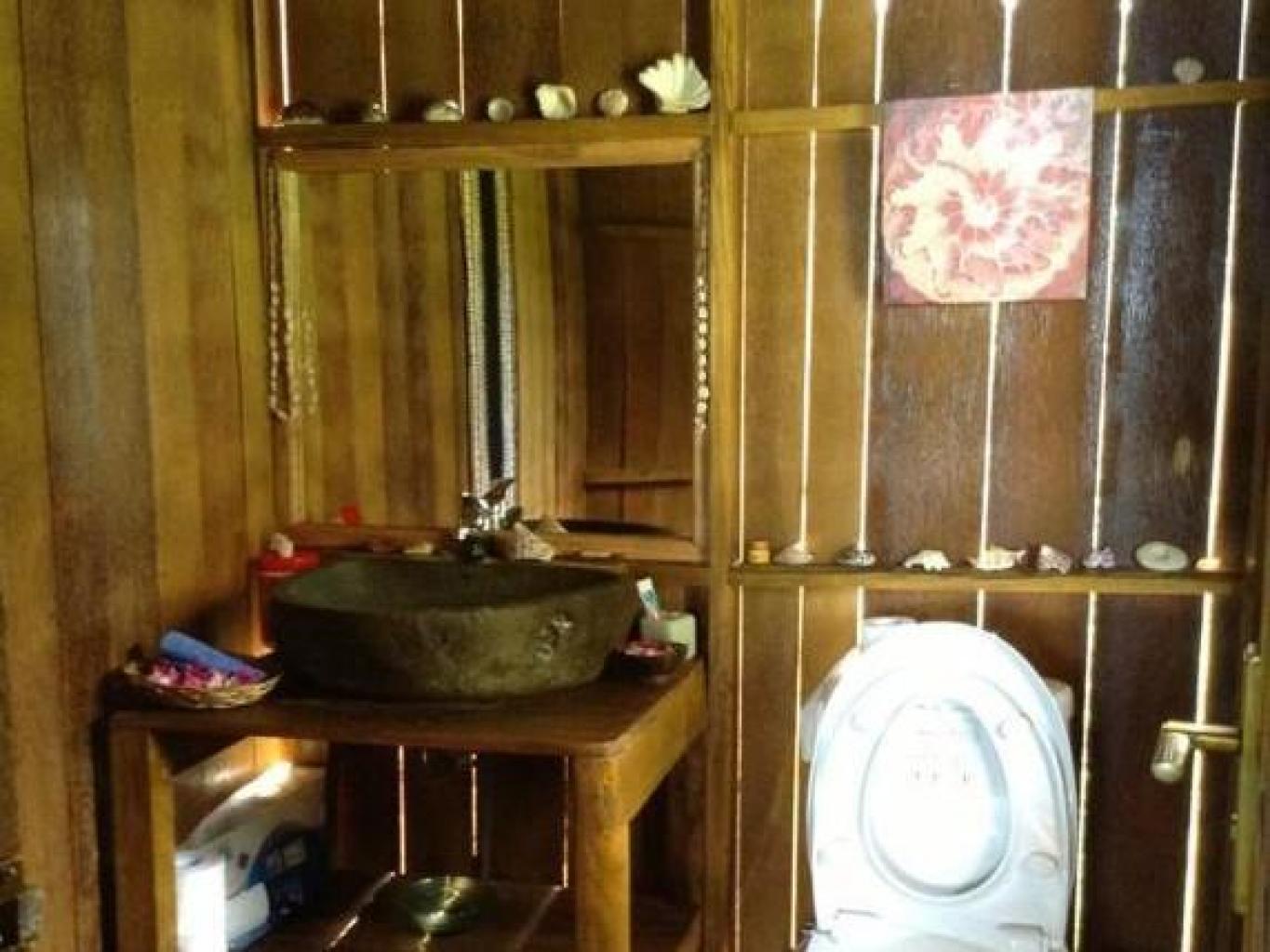 memiliki 3 kamar pribadi,dengan desain yg apik serta dilengkapi dgn kamar mandi bersama(Closet duduk),menghadap ke pantai serta halaman parkir yg luas dan terdapat Rumah pohon dlm areanya